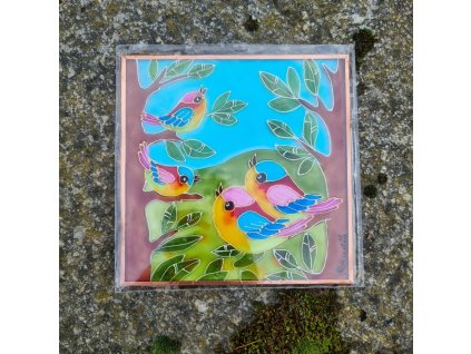 Ptáčci na větvi – ručně malovaný obraz na skle. Jedinečný obraz inspirovaný šumavskou přírodou a českým venkovem. Motiv veselých ptáčků přináší radost a letní atmosféru. Ruční...