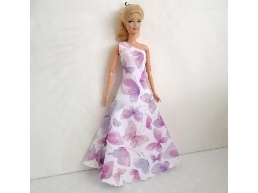 Dlouhé bílé šaty s motýlky pro panenky Barbie – elegance inspirovaná přírodou