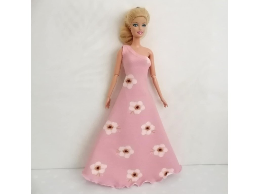 Dlouhé růžové šaty s květy pro panenky Barbie – romantická elegance