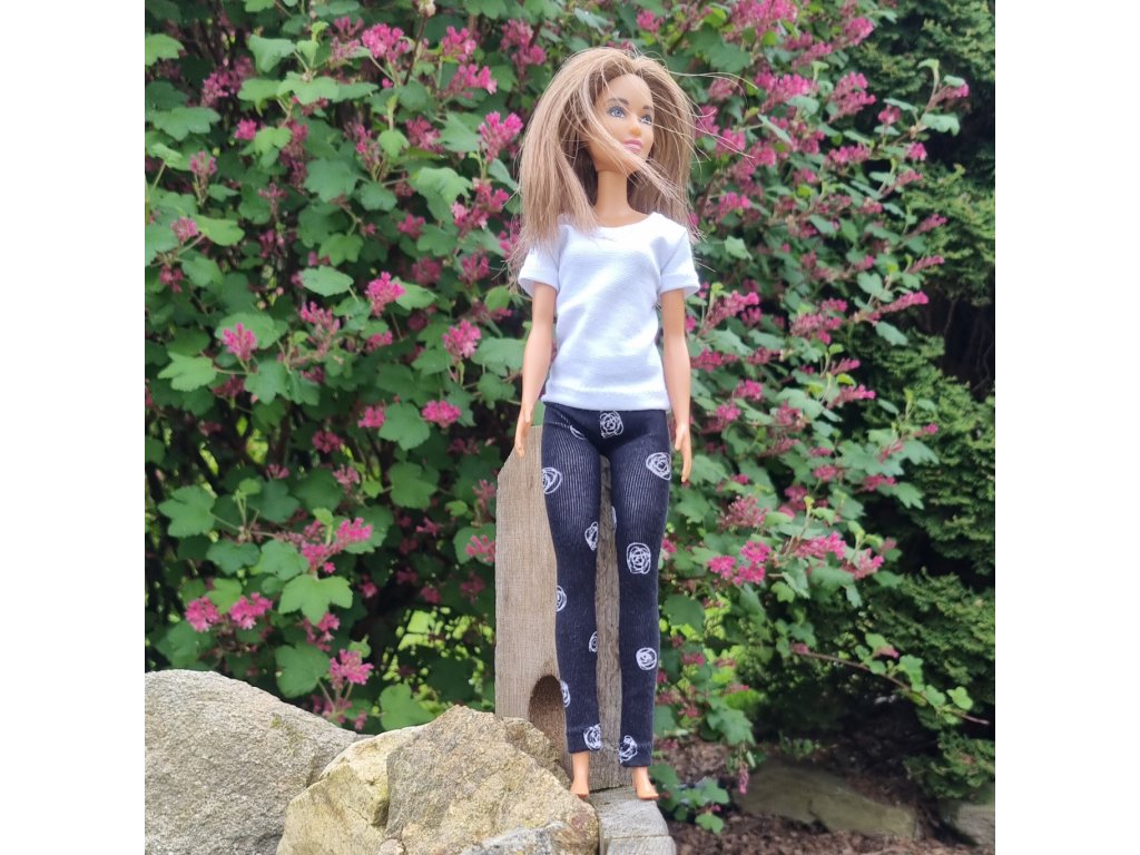 Komplet se skládá z trička a kalhot (legin). Tričko s krátkým rukávem a elastické dlouhé kalhoty (legíny) pro panenku Barbie jsou ušité z kvalitní látky (složení 95% bavlna, 5% elastan), zapínání je na suchý zip.
