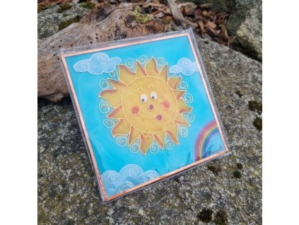 Veselé sluníčko – ručně malovaný obraz na skleJedinečný obraz inspirovaný šumavskou přírodou a českým venkovem. Motiv veselého sluníčka přináší radost a letní atmosféru. Ruční...