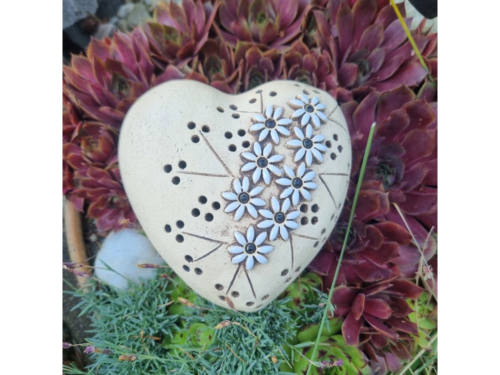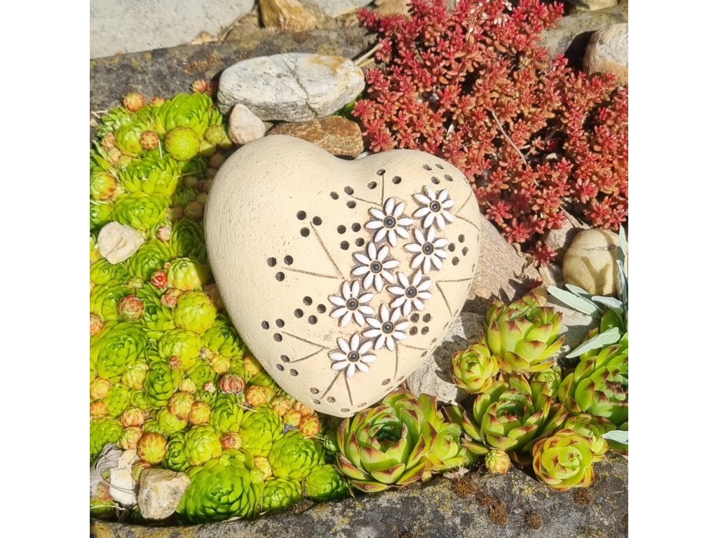 Dekorační kámen – Srdce s květinami