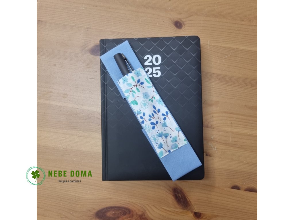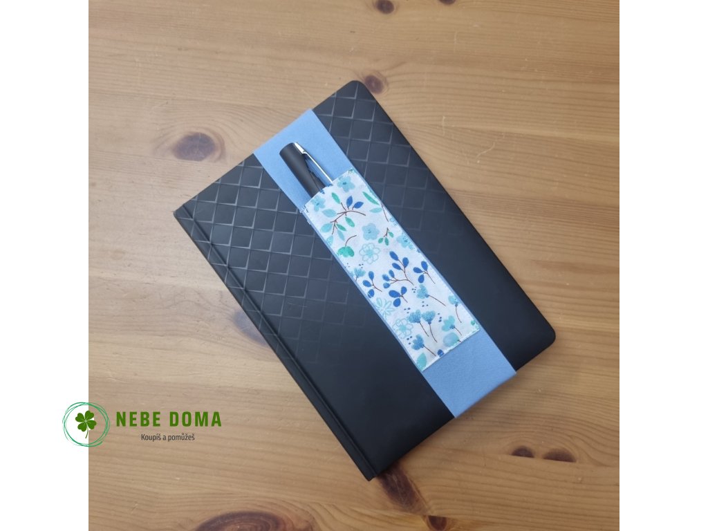 Držák na 2 pera k diáři – modrý s květinami (originální ruční výroba)