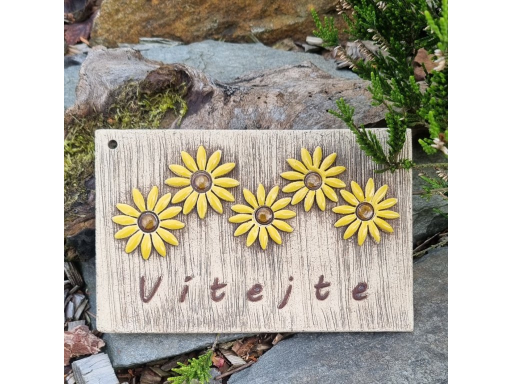 Vítejte - slunečnice - vítací cedulka - keramická kachle