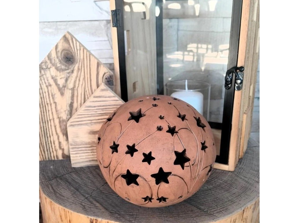 Keramická koule z tmavé hlíny s motivy hvězd a komet je jedinečným dekoračním prvkem, který zaujme svým vzhledem i příběhem. Ručně vyráběná v chráněné dílně, každý kus je originál – s jemnými odchylkami, které dodávají kouli osobitý charakter.