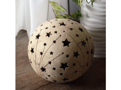 Vneste do svého domova či zahrady kouzlo noční oblohy s našimi keramickými dekoračními koulemi. Motiv hvězd a komet promění každý prostor v harmonické místo plné pohody. Koule můžete použít jako svícen na čajové svíčky nebo je jednoduše vystavit, aby rozzářily vaši zahradu, terasu či skalku.
