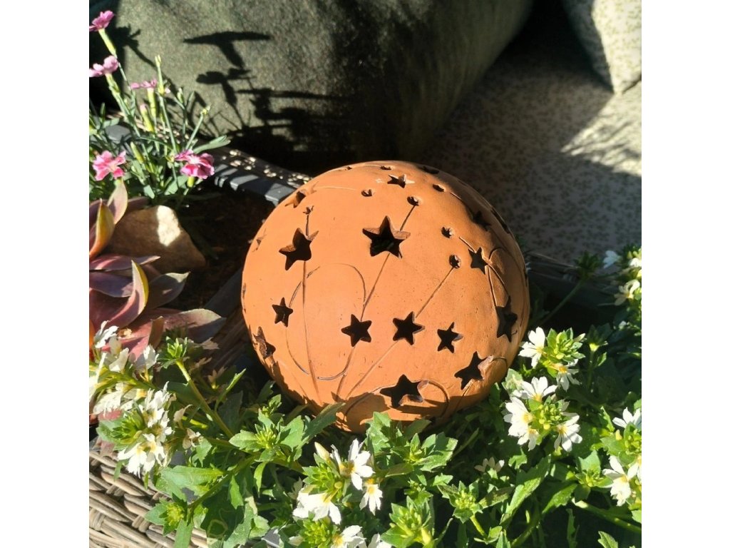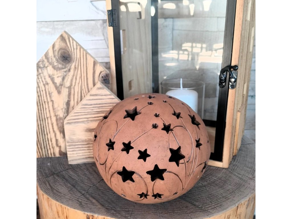 Keramická koule z tmavé hlíny s motivy hvězd a komet je jedinečným dekoračním prvkem, který zaujme svým vzhledem i příběhem. Ručně vyráběná v chráněné dílně, každý kus je originál – s jemnými odchylkami, které dodávají kouli osobitý charakter.