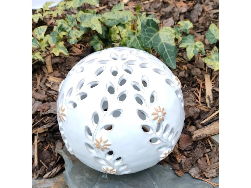 Keramické dekorační koule s dekorem větviček, větvičky jsou ozdobeny kytičkami - dekorační svícen do interiéru, zahrad, skalek, na terasu. Ozdobí i okolí jezírka.