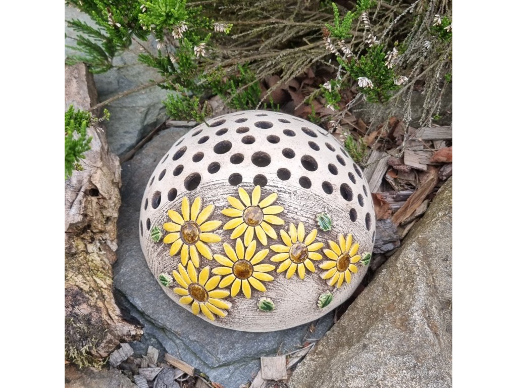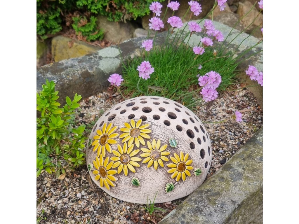 Keramické dekorační půlkoule s podmiskou s dekorem slunečnic.