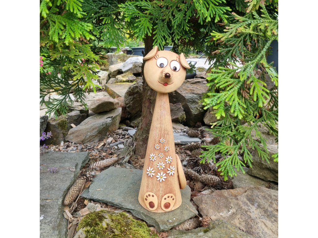 Keramický pejsek se sedmikráskami (terakota) – originální zahradní i interiérová dekorace