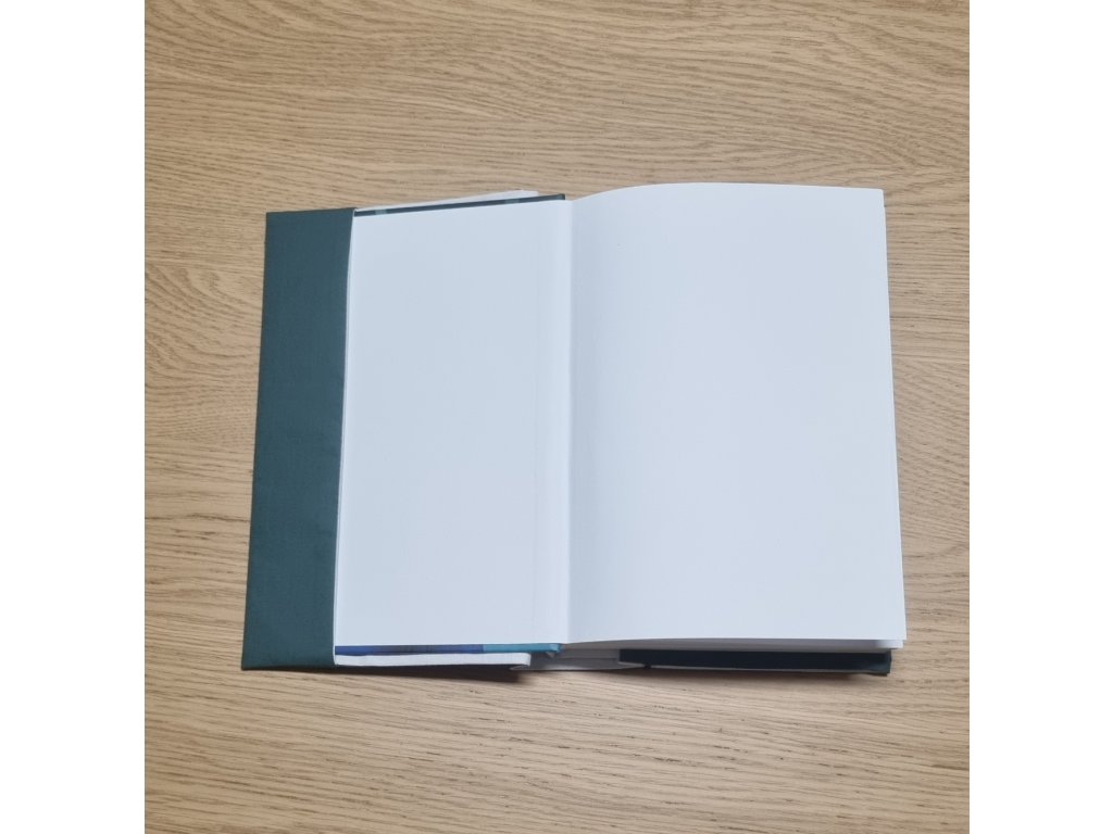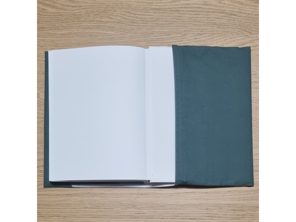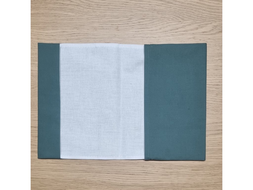 Provedení: Obal je podšitý bílou bavlněnou látkou, jedna klopa je pevná, druhá se dá posunovat podle tloušťky knihy nebo sešitu.