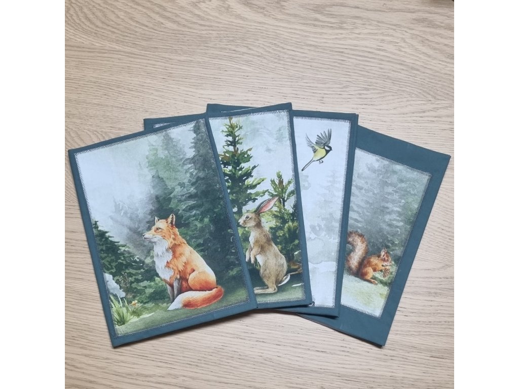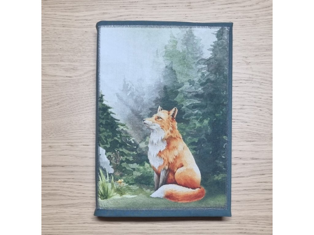 Látkový univerzální obal na knihu (bez štítku na jméno) s motivem lesa a zvířat