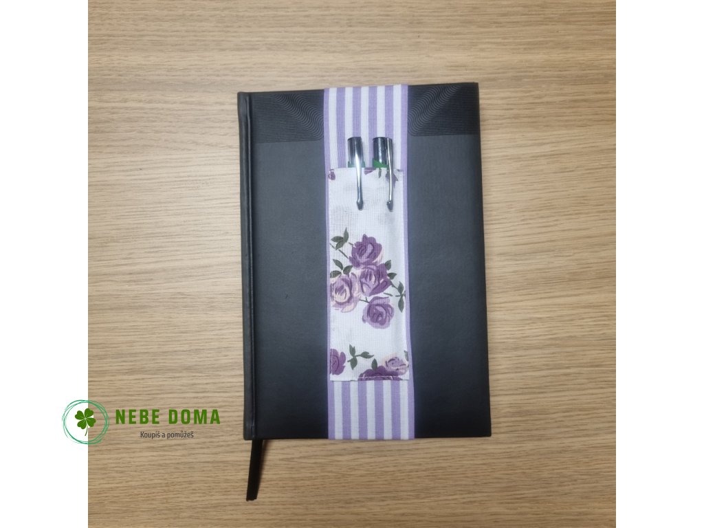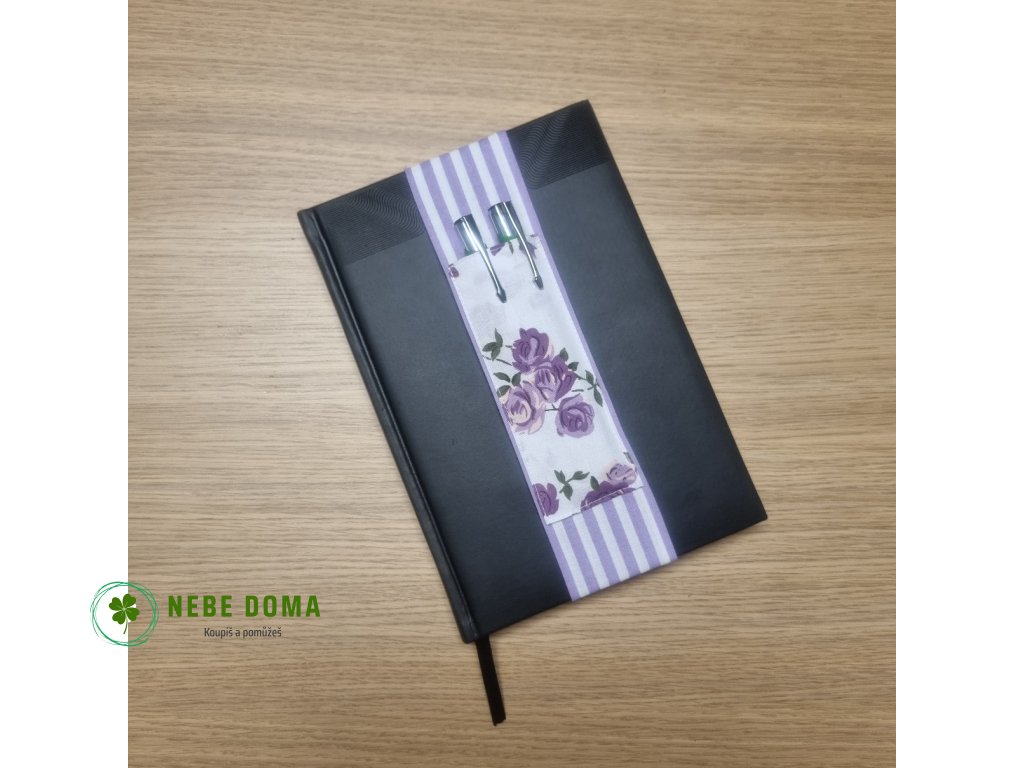 Držák na 2 pera k diáři – fialový s motivem růží (originální ruční výroba)