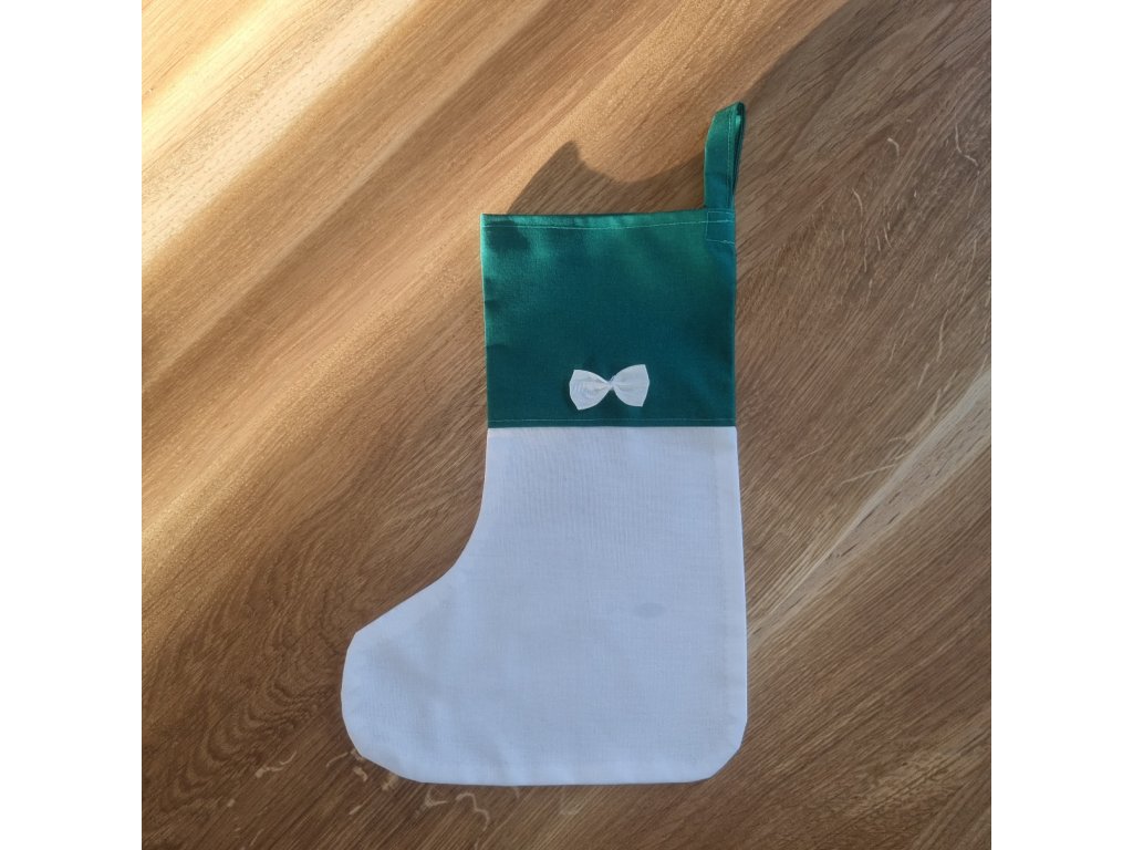 Vánoční mikulášská ponožka z bavlny, ušitá v regionální dílně. Bílo zelená se vzorem. Rozměry 22×32 cm. Ideální na drobné dárky.