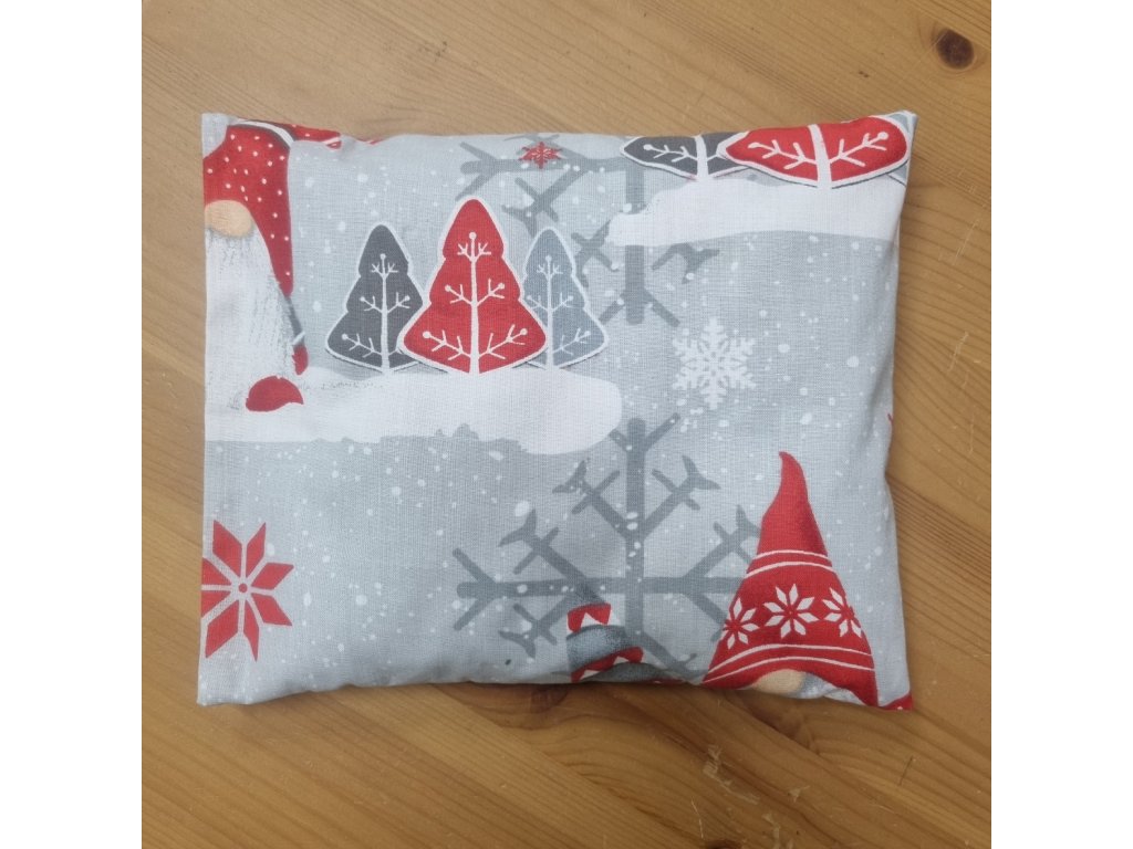 Nahřívací polštářek s třešňovými peckami se vánočním vzorem - trpaslíci