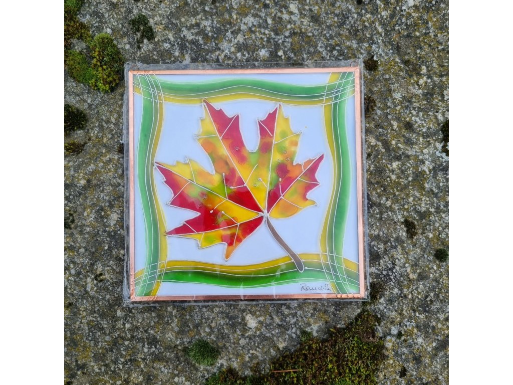 Podzimní list - V. Randák - ručně malovaný obraz na skle