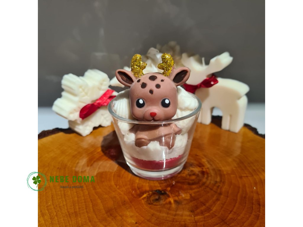 🦌 Vánoční dekorativní svíčka se sobíkem – Jablko & Skořice