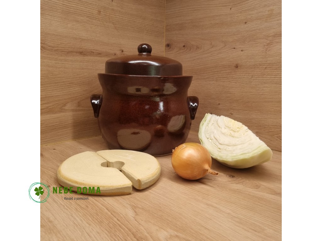 - Zátěž: Keramická závaží, která drží zelí ponořené ve vlastní šťávě, aby nedošlo k plesnivění.